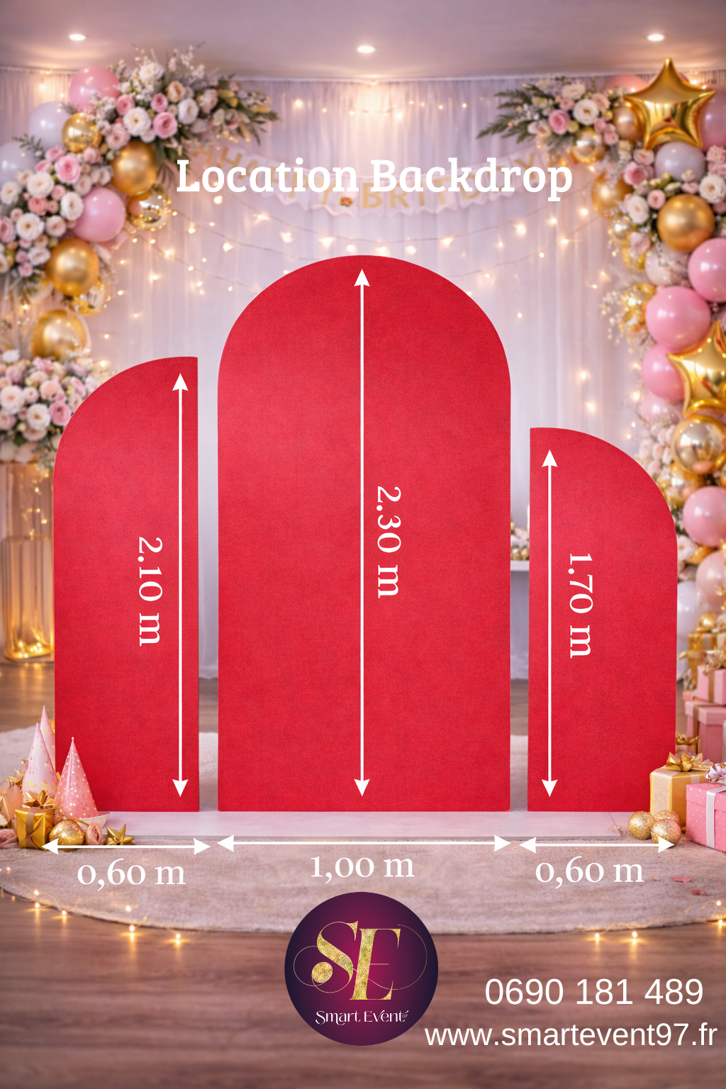 Apportez une touche élégante et moderne à votre événement avec nos backdrops arches, parfaits pour créer un magnifique coin photo ou sublimer votre décoration.